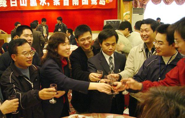 2006年3月26日上午,经过几位年轻校友一个多月的组织筹划并在近100位东大在厦校友的积极响应之下,以“结缘白山黑水,聚首南国鹭岛”为主题的首次东北大学厦门校友联谊会在福联大饭店隆重举行。厦顺铝箔副总江秀心校友、厦门大学材料系主任、特聘教授刘兴军校友、厦门大学材料系教授程璇校友、厦门虹鹭公司总工程师彭福生学长、厦门金鹭公司常务副总王其山校友、三达膜科技有限公司常务副总王建英校友、来自厦门各地的90多位新老校友以及来自泉州校友分会的邓荣洲会长、杨安田学长参加了此次大型聚会。东北大学福建校友会蔡书明秘书长代表福建校友会发来了热情洋溢的贺信,庆祝校友聚会的隆重举行并预祝在不久的将来成功成立东大厦门校友会。值得一提的是,校友总会副秘书长魏向前老师应邀专程从沈阳赶到厦门,使到场90多位厦门校友再次感受到了母校的深切关怀!