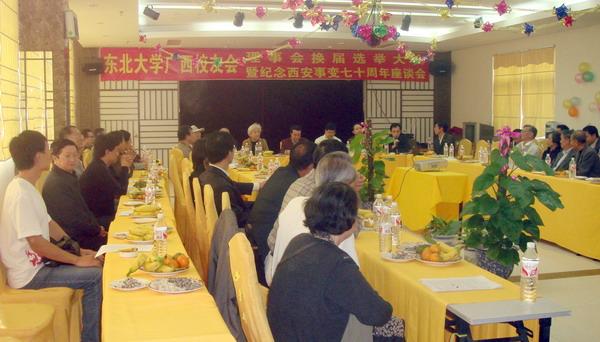 东北大学广西校友会于11月25日下午在广西首府南宁市召开了校友会换届选举大会暨纪念“西安事变”70周年座谈会。来自广西南宁、柳州、百色、玉林等地的70多名东北大学新老校友出席了本次会议。