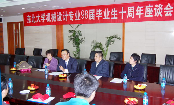 2日上午我们在汉卿会堂召开了设计一、三班联合座谈会,并有幸请到了现任机械学院党委书记高英学、东大医院院长刘建军、还有当年做我们学生工作的蔡老师,现任东北大学工会副主席任丽。会上高书记作了生动、详细的介绍,给大家对十年来学校的各项变化有了更多的了解,同时对母校的认识也得到了全面的提高。同时刘建军老师也与我们回顾了十年前的趣事,一、三班的班长代表各自班机向目校的老师作了介绍和发言,代表同学们感谢老师的培养。