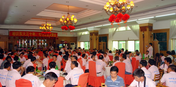 2008年7月26日,来自世界各地的东工七七级工企自动化专业的毕业生齐聚母校开展了“相识东大三十年,七七工企大聚会”活动。