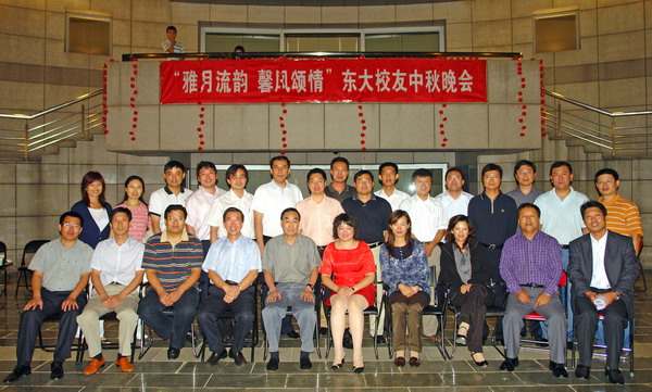9月12日,“雅月流韵 馨风颂情”东大校友中秋晚会在我校汉卿会堂观景台举行。来自辽沈地区的30余位中青年校友代表出席晚会,观赏着明亮圆润的月光、品尝着鲜美的月饼和葡萄、倾听着由我校艺术学院学生演奏的美妙优雅的弦乐,校友们与母校老师共叙同学情、师生情、母校情。校长赫冀成、副校长王宛山应邀出席晚会并亲切看望了莅会的校友代表。