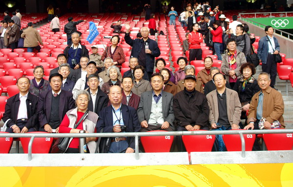 “会会同学们,看看北京”参会的每个人的期盼。为此,安排了22日的“北京一日游”坐落在城北奥林匹克公园内的“鸟巢”、“水立方”是一日游的首选,他是中国人民实现百年梦想,成功举办第29届奥运会的见证。大家在涌动的参观人群中不时地停下来按动相机快门,留住这美好的时刻。午餐过后,在导游的领导下穿城向南游览了天坛公园。昔日这里皇家祭天祈雨只有皇亲大臣显贵的才能涉足胜地,而今已为广大劳动人民健身、休闲娱乐所用。看到百年老树环绕的祈年殿为代表的古建筑,辉宏壮观,大家有多了些感叹,为自己是炎黄子孙而骄傲。夕阳西下,该回驻地了,顺道大家又参观了国家大剧院,逛了修建一新的前门大厅。这一天,大家很快乐。北京的美。同学的情,将深植心底。