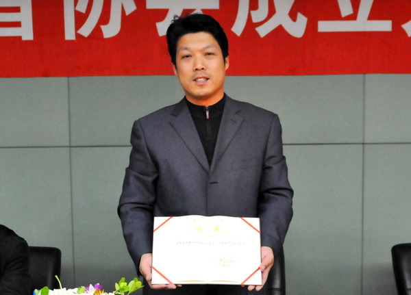 张玉宝副书记和李鹤副主任共同为协会会徽揭牌