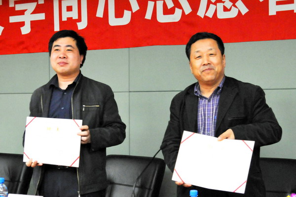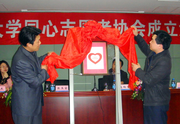 校学生社团联合会主席林杰同学代表学生社团联合会宣读了批文。成立大会通过了同心志愿者协会章程,并选举产生了会长、副会长。魏向前主任向同心志愿者协会授旗,张玉宝副书记和李鹤副主任共同为协会会徽揭牌。同心志愿者协会聘请王宛山副校长为协会名誉顾问;聘请魏向前主任、张玉宝副书记为协会顾问;聘请李鹤副主任为协会指导老师。魏向前主任、李鹤副主任分别代表校友总会和协会指导教师讲话,鼓励同学们好好学习,努力工作,并对学生社团发展提出了殷切的希望。