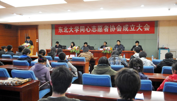 4月2日,东北大学同心志愿者协会成立大会在汉卿会堂隆重举行