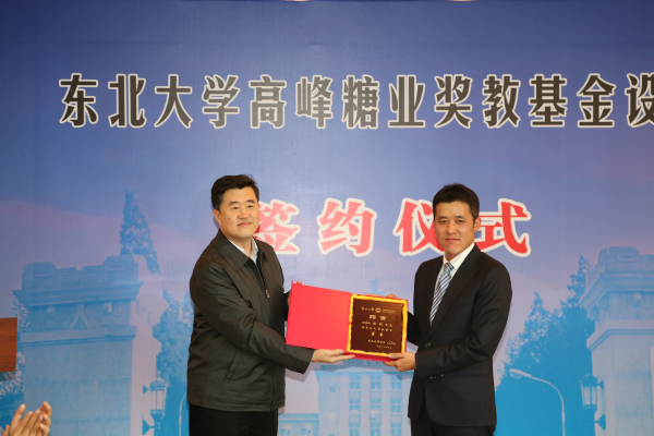 杨明书记为高峰糖业有限公司董事长孙凯颁发校董聘书