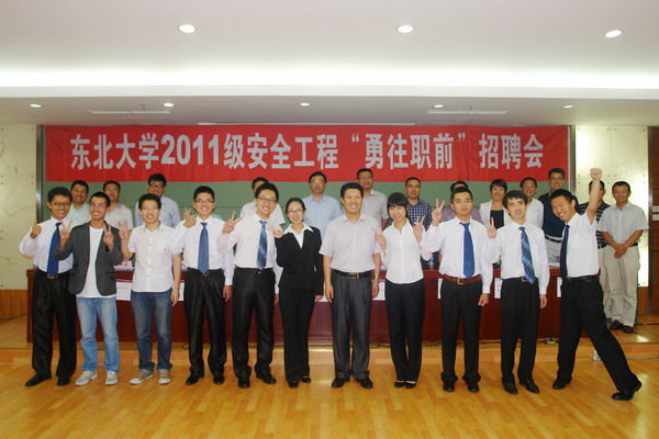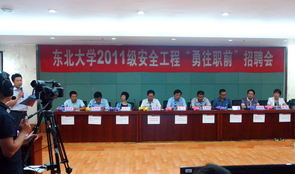 在严峻的就业形势下,为了让同学们掌握面试技巧,积累面试经验,6月18日晚,由校友总会办公室、党委宣传部、学生指导服务中心、资源与土木工程学院联合主办,在汉卿会堂402会议室举办了2011级安全工程“勇往职前”招聘会。在校友总会办公室的邀请下,辽宁省石油化工规划设计院有限公司总经理孙云、沈阳东方钛业股份有限公司董事长梁显军、辽宁省机械研究院院长于泽旭、沈阳威泰科技发展有限公司董事长胡丹萍、上海巴兰仕汽车检测设备股份有限公司董事冯定兵、沈阳中北通磁科技有限公司副总经理王兴刚、鞍山煜宸激光科技有限公司副总经理楚文龙、东网科技有限公司人力资源总监韩爽、抚顺新钢铁有限责任公司人力资源处处长赵相隶等9位校友企业家和校董单位代表担任招聘嘉宾。香港凯富泰有限公司董事长周��、辽宁省包装总公司总经理刁奇、辽宁诚泰投资有限公司董事长张松伟、东北大学党委宣传部部长丁义浩、学生指导服务中心副主任吴政新等担任现场点评嘉宾。资源与土木工程学院部分师生代表观摩本次招聘会。东北大学校友总会秘书长、2011级安全工程专业班导师李鹤主持招聘会。