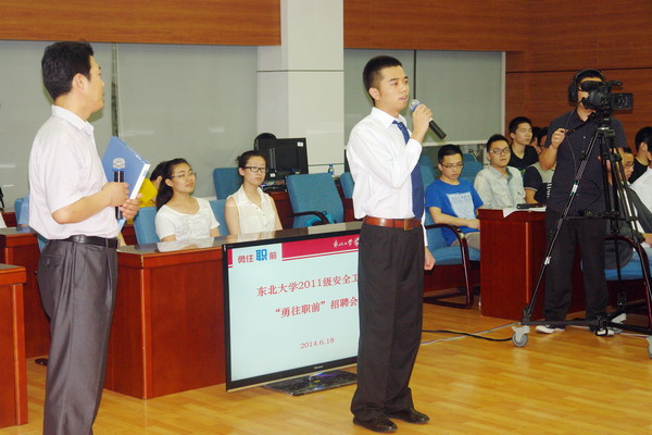 6月18日,东北大学辽沈地区校友企业家首届“勇往职前”招聘会在汉卿会堂402会议室举行