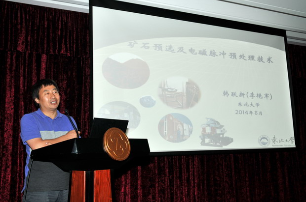 李艳军副教授代表东北大学矿物加工工程教授、博士生导师、资源与土木工程学院副院长韩跃新作题为《矿石预选及电磁脉冲预处理技术研究》的新技术推介