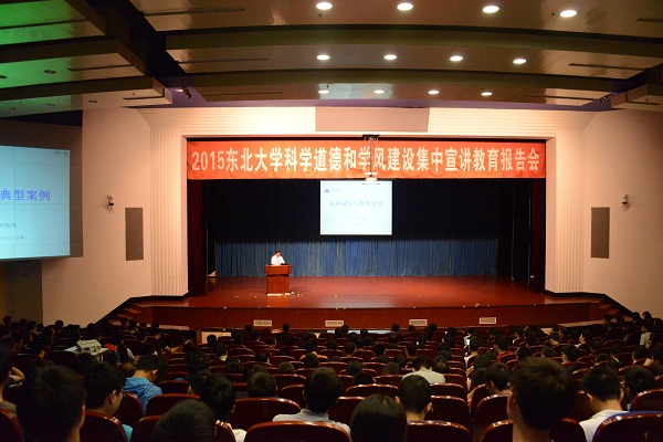 6月11日下午,2015东北大学科学道德和学风建设集中宣讲教育报告会在汉卿会堂蔡冠深报告厅举行,国家自然科学基金委副主任、我校78级轻金属冶炼专业何鸣鸿校友应邀为在校师生作了以“科研诚信与典型案例”为题的报告。副校长左良主持报告会。