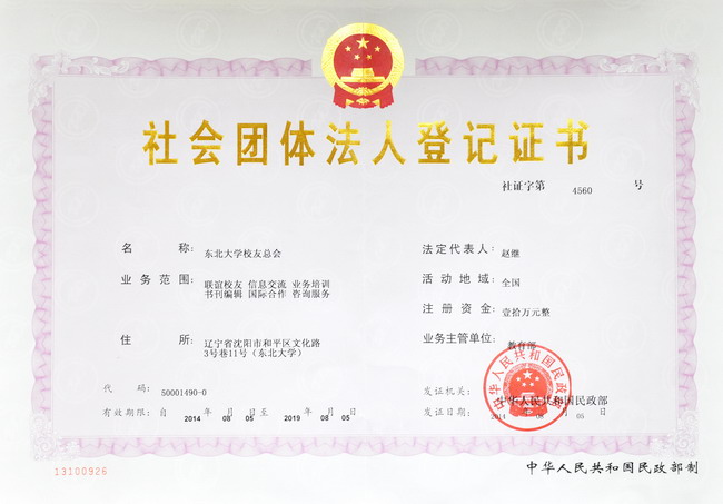 东北大学校友总会在国家民政部注册