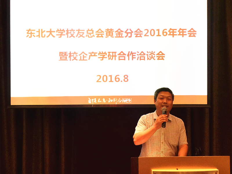 会上,孙家学向参会人员介绍了东北大学的近期发展情况。“十二五”期间,学校高度重视人才培养、人才引进;学校新校区建设、家属区建设为学生和教职工提供了更为完善的教学、生活环境;学校“十三五”规划制定、全面落实综合改革方案;坚持以“双一流”建设为目标,进一步增强学校的竞争力。孙家学指出,学校的发展离不开校友的支持,学校持续关注校友、重视校友,希望校友凝心聚力,为母校、为校友各自的事业发展不忘初心、继续前进。