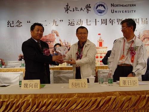 东北大学深圳校友会向母校、校友总会、上届深圳校友会会长董日臣学长赠送了纪念品。最后全体校友齐唱校歌,祝愿东大母亲明天更辉煌。