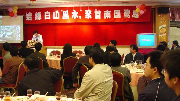 2006年3月26日上午,经过几位年轻校友一个多月的组织筹划并在近100位东大在厦校友的积极响应之下,以“结缘白山黑水,聚首南国鹭岛”为主题的首次东北大学厦门校友联谊会在福联大饭店隆重举行。厦顺铝箔副总江秀心校友、厦门大学材料系主任、特聘教授刘兴军校友、厦门大学材料系教授程璇校友、厦门虹鹭公司总工程师彭福生学长、厦门金鹭公司常务副总王其山校友、三达膜科技有限公司常务副总王建英校友、来自厦门各地的90多位新老校友以及来自泉州校友分会的邓荣洲会长、杨安田学长参加了此次大型聚会。东北大学福建校友会蔡书明秘书长代表福建校友会发来了热情洋溢的贺信,庆祝校友聚会的隆重举行并预祝在不久的将来成功成立东大厦门校友会。值得一提的是,校友总会副秘书长魏向前老师应邀专程从沈阳赶到厦门,使到场90多位厦门校友再次感受到了母校的深切关怀!