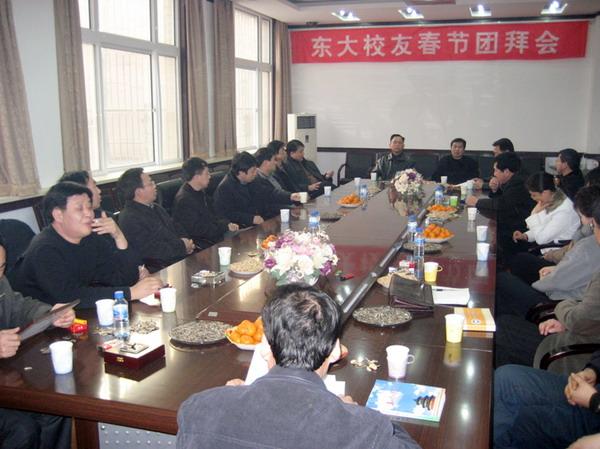 2月11日下午,风和日暖,春光明媚,河北理工大学冶金会议室内一片欢声笑语,东北大学唐山校友春节团拜会在这里举行。这是纪念“西安事变”七十周年座谈会、新年茶话会之后唐山校友的第三次聚会。唐钢股份公司副总经理谢海深,副总工程师董和民,唐山市环保局副局长邢国军,遵化港路钢铁公司总经理孟宪权,首钢京唐钢铁公司人力资源部部长助理陈小平,唐山劳动日报社曹妃甸记者站站长张保东等初次参加聚会的校友心情格外激动。
