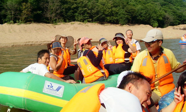 为了使“海盗团”更具战斗力,校友们8人分为一条船,选出一名男同学当海盗船长,一名女同学当政委,负责沟通与协调照顾船员,带领本船同大部队配合作战,每位船长配备高科技通讯工具哨子一个,一路下来,所向披靡,哨声所指,无一幸免,斩获无数,水枪,水盆,甚至连对方船员都给俘获了。战斗中,校友们个个神勇,全力以赴,大家同舟共济,听从指挥,努力配合,互相帮助,结下了战友般情谊。河水平缓处,大家悠闲自得,晒着太阳,欣赏着两岸青山绿林,幽深宁静,一派原始风光。经过3个多小时的漂流,“海盗团”胜利登岸,校友们脸上都是幸福的笑容,身上都是健康的颜色。红河谷,水上漂的是船,空中飘的是欢笑,留在校友心底的是“带有一丝野性的快乐而难忘之旅” 。