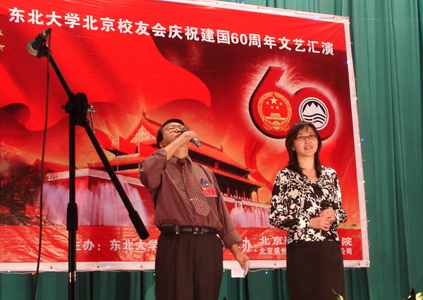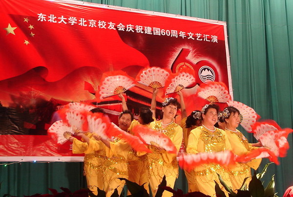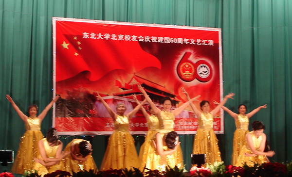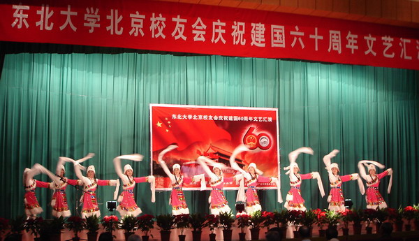 东北大学北京校友会于9月20日下午,在北京矿冶研究总院礼堂,隆重举办庆祝建国60周年大型文艺汇演,著名的首钢艺术团及有关校友单位共演出了20多个精彩节目,获得与会近300名校友的阵阵热烈掌声,汇演获得圆满成功。东北大学校友总会办公室副主任李鹤专程由沈阳赶来出席汇演。出席汇演的还有:著名作曲家吕远校友,会长、中国工程院院士、钢铁研究总院院长干勇,副会长兼秘书长、北京城建集团原董事长佟永贵,副会长、首钢集团董事长朱继民,副会长、北京矿冶研究总院院长蒋开喜,北京矿冶研究总院党委副书记张晓春校友,北京矿冶研究总院副院长于月光校友,副会长、国资委冶金离退休干部局副局长邓国增,副会长、原北京冶金管理干部学院副院长黄正毓,副会长、北京东方般若科技发展有限公司董事长刘英魁,监事长、北京科技大学党委原副书记陈世禄。校友会顾问张绍先、王克中、李生林、祝熊庆也出席观看。