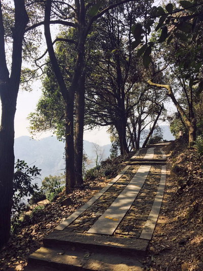 此时晴空万里阳光明媚,虽然天气稍有些热,但校友们登山的热情不减,情绪高昂。经过一个多小时的山路辗转,台阶越来越陡,校友们仍精神抖擞,意气风发,向着终点奋力前进。尽管途中有个别校友登山步伐略慢,但校友们相互鼓励,相互搀扶,处处体现了团结的力量。