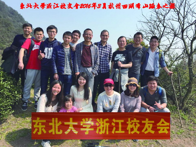 阳春三月,万物复苏,天堂杭城已是绿意盎然,处处生机蓬勃。东北大学浙江校友会为了宣扬母校自强不息的校园文化,倡导健康有益的低碳生活,走进绿色、亲近自然、拥抱阳光,进一步激发校友们的生活热情和工作干劲,于2016年3月5日组织了登山踏春活动。上午10点,在浙江校友会会长殳黎平,常务副会长干华良,副会长陈旭夏以及秘书长刘子勇的带领下,踏春之旅从“龙井茶室”开始了。