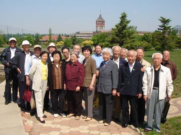 老年人常有一种怀旧思想。当我们在东大校史展中看到1950年9月热烈欢送我班同学付仲敏胸戴红花参军时的照片,马上回想起我班同学热血沸腾,踊跃报名参军的热烈场面。我们还到原东北工学院校址(即现在的沈阳工业大学)去寻找我们大学时代学习生活的轨迹。看到当时兴建的采冶地学馆大楼现在仍巍然耸立,回想那时正处在抗美援朝初期,大楼玻璃上还贴着米字纸条,我们就在这楼里上课,夜晚利用大楼走廊进行“矿山测量”实习。我们毕业时在楼前照的毕业纪念照,至今还珍贵地保存着。看到改造后的学生宿舍、运动场……,无不勾起我们许多美好的回忆。顿感我们又回到了大学时代,也年轻了许多。