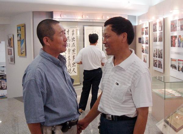 李鹤副主任、王晓英部长陪同校友们参观张学良业绩展