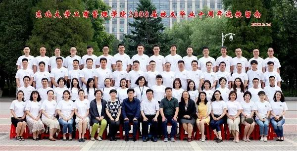 2018年6月16日下午,工商管理学院2008届校友毕业十周年返校活动在南湖校区成功举办。东北大学副校长孙雷、东北大学对外联络与合作处处长李鹤、工商管理学院党委书记郝树满、工商管理学院党委副书记兼副院长严立宁、工商管理学院副院长赵红梅、东北大学学生工作处副处长马静涛、东北大学党委组织部副部长李晓璐、工商管理学院工业工程系教授郭伏、工商管理学院金融系教师李亚宁、工商管理学院党委组织员董影茁出席活动。