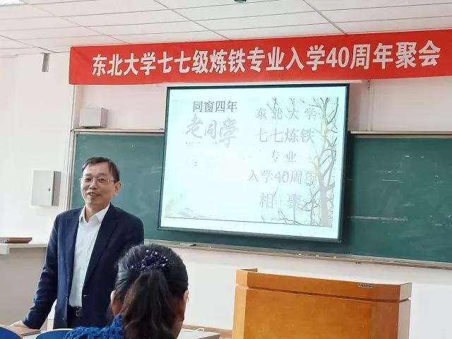 2018年5月12日至13日,东北大学77级炼铁专业校友在母校举办了入学40周年同学会。当年一起入学70人中有42人从全国各地乃至美国、日本赶来参加这次聚会。同学会首先举行座谈会,座谈会地点选在当年同学们上课和学习利用率最高的冶金馆313教室,一进教室大家立刻想到当年上课的学习场景,内心极不平静。原钢冶系主任王文忠教授、现冶金学院院长朱苗勇教授、原班主任和主管学生工作的领导、教师等多人应邀出席了座谈会。