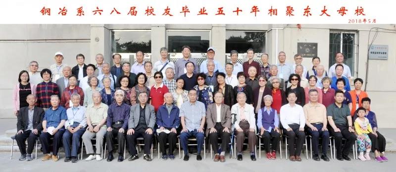 风和日丽,松柏苍翠,百花吐艳,在这美好的初夏时节,五月二十四日,钢冶系六八届校友及家属近六十人,兴高采烈地回到母校,纪念毕业五十周年。