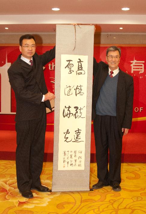赛斯特CEO李泽清博士向赛斯特前任董事长、现名誉董事长、东北大学原副校长杨佩祯教授赠送书法作品