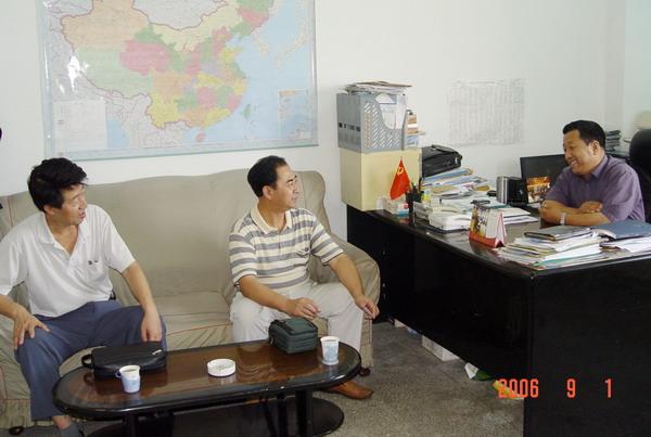 9月1日、76届采矿二班近30人毕业30年后荣归母校,深圳市建筑设计研究总院第一设计院院长刘福义、我校数学系韩震老师代表返校同学来到校友总会办公室协商安排座谈的有关事宜。校友总会副秘书长魏向前(右)热切接待了校友们的来访