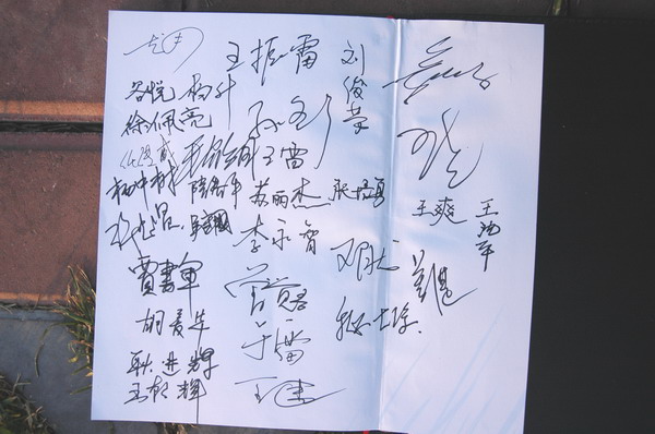 参加聚会的同学们签下了名字