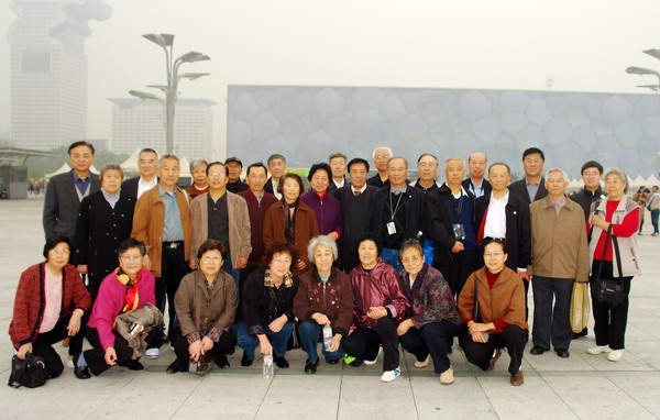 “会会同学们,看看北京”参会的每个人的期盼。为此,安排了22日的“北京一日游”坐落在城北奥林匹克公园内的“鸟巢”、“水立方”是一日游的首选,他是中国人民实现百年梦想,成功举办第29届奥运会的见证。大家在涌动的参观人群中不时地停下来按动相机快门,留住这美好的时刻。午餐过后,在导游的领导下穿城向南游览了天坛公园。昔日这里皇家祭天祈雨只有皇亲大臣显贵的才能涉足胜地,而今已为广大劳动人民健身、休闲娱乐所用。看到百年老树环绕的祈年殿为代表的古建筑,辉宏壮观,大家有多了些感叹,为自己是炎黄子孙而骄傲。夕阳西下,该回驻地了,顺道大家又参观了国家大剧院,逛了修建一新的前门大厅。这一天,大家很快乐。北京的美。同学的情,将深植心底。