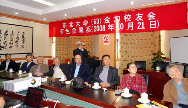 这此校友会大家感动的另一件事是加工教研室的老师代表和东大校友会的魏向前副秘书长在百忙中莅临我们的聚会并带来了珍贵的礼物――精美的东大校徽和记录东大光荣历史反应东大成长变化的光碟。新校徽佩戴胸前,我们找回了当学生的感觉,仿佛又年青了!我们聚精会神地倾听魏主任的介绍,边看着屏幕上出现的一幅幅画面:片片草地,成荫的绿树,清美如画的校园,记忆中的冶金馆,采矿馆屹立其中。更有一幢幢现代化的教学楼和各种新场馆……这一切让我们激动,欣喜。今天的母校变得太美了。真羡慕现在就读于东大的学弟学妹们,你们太幸运了。能在这么好的环境里读书生活,要珍惜要努力啊!“自强不息,知行合一”准备好谓母校争光,为祖国建功立业。让我们共同祝愿东大的明天更加美好。