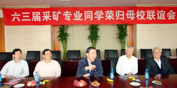 在阳光明媚,鲜花盛开的五月,我们六三届采矿班同学与我们尊敬的王金波,笪盍和张殿斌老师相聚在汉卿会堂308会议室,资源与土木工程学院的魏德洲院长和左斌书记出席了会议。校友总会的负责人参加会议并给与指导。魏院长介绍了学院的现状和前景,校友会副秘书长魏向前介绍了东北大学的发展历程,王宛山副校长还亲临会议看望我们并做了深情讲话,使我们感到亲切和深受鼓舞。