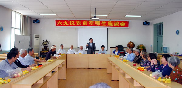 9月7 日,参加聚会的六九届仪表、六九届真空校友陆续来到东北大学招待所。校友们看到招待所门前悬挂的“热烈欢迎六九届仪表、真空校友荣归母校”的横幅,个个热泪盈眶,心情激动,不禁又想起了1964年入学时的情景。大多数校友对面而立,却不相识。四十年的风霜岁月,将当年意气风发的青年变为两鬓斑白的老者。但岁月无情人有情,许多校友为如期参加这次梦寐以求的相聚而克服了种种困难。一位校友因高血压病重住院,8 月底才出院,虽然行动语言仍然困难,但执意在女儿和儿媳的陪同下从四平前来参加聚会。一对同班的校友夫妻,丈夫五年前曾患脑出血,至今仍然步行困难;妻子患眼病,视力低下。可病痛难抵同学真情,夫妻俩相互扶持着并在另一位校友的陪伴下如期与会。一位校友退休后与老伴全力承担了照顾孙子任务,日夜不离。为不错失聚会,他带着老伴和两岁孙子从深圳坐飞机于7 日晚十二点赶到。由于旅途劳累,到沈阳即感冒发烧,仍然坚持参加全部活动。还有一校友正赶上有重要公务难于脱身。在当地无方便交通工具的情况下,坐火车转道到武汉乘飞机赶赴沈阳,终于参加上最后半天的活动。更令人感动和难忘的是,王新庆老师听到校友聚会的消息后带病从辽河油田赶来与学生相见,王玲生老师发高烧仍坚持参加了师生座谈会。