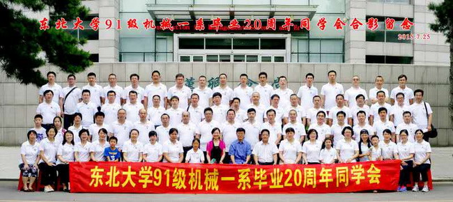 20年前,大家相约“再过20年我们再相会”;20载后,我们重逢在校园。师生相见,同学聚首,有说不完的话题。回忆你我快乐的往事,描绘你我美好的憧憬。在这欢庆的时刻,我们洒下的是欢笑,倾诉的是衷肠;珍藏的是友谊,淡忘的是忧伤;收获的是梦想,放飞的是希望!虽然时光可以带走青春韶华,却带不走深厚的同窗情谊。虽然我们天各一方,但请记住:“我们永远是同学,是东北大学机械一系91级的一员!”岁月悠悠,但友情的线索会把我们紧紧相连。