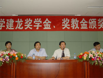 6月20日下午4时,东北大学建龙奖学金、奖教金颁奖仪式在汉卿会堂402会议室隆重举行。东北大学副校长王宛山和建龙钢铁控股有限公司人事行政部总经理顾根华为获奖学生和教师颁发了证书和奖金。参加颁奖仪式的有基金管理办公室主任魏向前、学生处处长徐峰、人事处副处长严晓鸣和全体获奖人员,学生处副处长郑虹主持了颁奖仪式。建龙钢铁控股有限公司于2000年在我校设立建龙基金,每年投资80万元人民币,连续三年投入240万元,用于设立东北大学建龙奖学金、东北大学建龙奖教金,应届毕业生到建龙企业工作的就业资助金,资助材冶学院学生实习差旅费、资助教师科研项目启动金等。截止今年,东北大学奖学金评选了5次,获奖学生有433人,东北大学奖教金评选3次,获奖人数为60人。