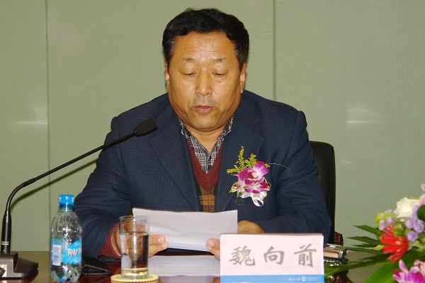张学良教育基金会秘书长、东北大学校董会办公室主任魏向前介绍东北大学周鲸文奖学金