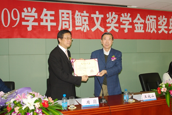王宛山副校长在讲话中高度评价和充分肯定了周��先生对国家教育事业的支持和对东大学子的关爱。他希望获奖学生要学习周鲸文先生在国家、民族危难的时候,勇于承担重任,敢于奉献自我和爱校爱乡爱国爱人类的实践精神;学习周��先生资助特困学子,从思想上帮助他们战胜困难的爱心。王宛山副校长强调,获奖学生要珍惜获奖荣誉,再接再厉,在学习中取得更大的成绩,培养自己的社会责任感,以实际行动回报周��先生和社会的关爱。