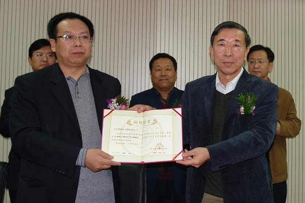 王宛山副校长向北京建龙重工集团颁发捐赠证书