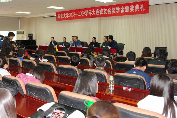 4月17日下午,2008-2009学年东北大学大连校友会奖学金颁奖仪式在学生活动中心200会议室举行。大连校友会副会长白树明、孙俊鹏、王德虎、马万昌、李德坤等五位校友专程从大连回母校为获奖学生颁奖,副校长王宛山出席颁奖典礼。张国正等20位同学获得2008-2009学年大连校友会奖学金。
