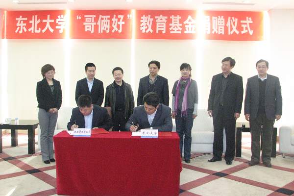依据协议规定,为了支持我校的教育事业,加强双方在人才培养方面的合作,推动双方的共同发展,抚顺哥俩好化学有限公司决定向张学良教育基金会捐赠30万元人民币,设立东北大学“哥俩好”教育基金,该基金将用于支持工商管理学院的学生开展科技竞赛和校园文化活动。
