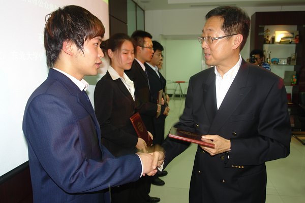 在周��先生为获奖的五位同学颁发荣誉证书后,获奖学生代表尹敬敬发表了获奖感言。周��先生在颁奖仪式上勉励同学要珍惜这个大时代赋予大家的广泛研究、自由表达的权利,希望大家以社会发展的契机迸发新的思考,努力学习,潜心研究,为国家的未来做出贡献。
