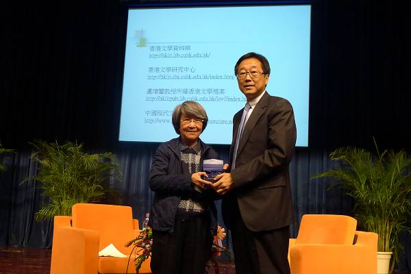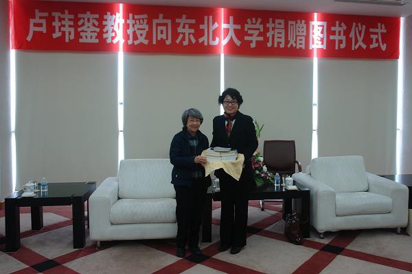 卢玮銮教授此次来访向我校捐赠图书共48册,其中包括著名作家司马长风、李辉英以及她本人的代表著作。当天晚上,卢玮銮教授在汉卿会堂蔡冠深报告厅作了题为“我和小思的约会――漫说情牵东北的文学世界”的讲座。辽宁省政协原副主席赵新良先生、沈阳市政协副主席张秀华以及我校党委书记熊晓梅在现场聆听了讲座。