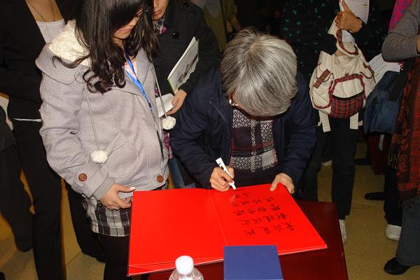 卢教授的报告深受学生的喜爱,被邀题字留念