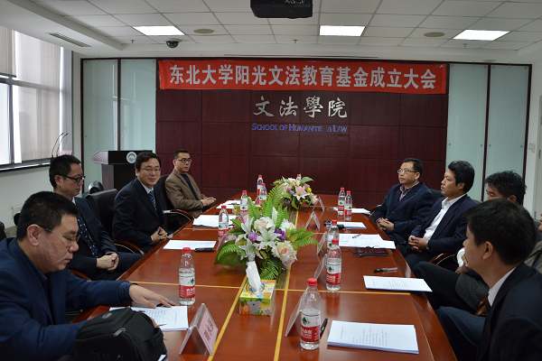 11月26日上午10:00,文法学院召开阳光文法教育基金成立大会。东北大学校友总会、校董会、基金管理办公室主任李鹤、阳光文法教育基金第一届管理委员会8名委员参加了会议。
