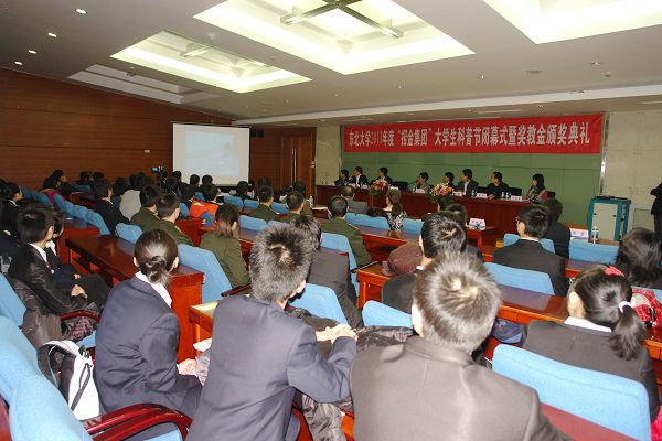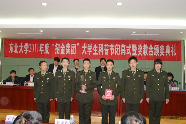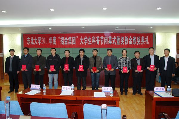 12月19日下午,东北大学2011年度“招金集团”大学生科普节闭幕式暨奖教金颁奖典礼在汉卿会堂402室举行。15个学院代表队获奖,资土学院韩跃新教授等十人获得“招金集团”奖教金。山东招金集团副总经理李守生、党委副书记姜智慧,我校副校长姜茂发以及相关部处负责人出席会议。