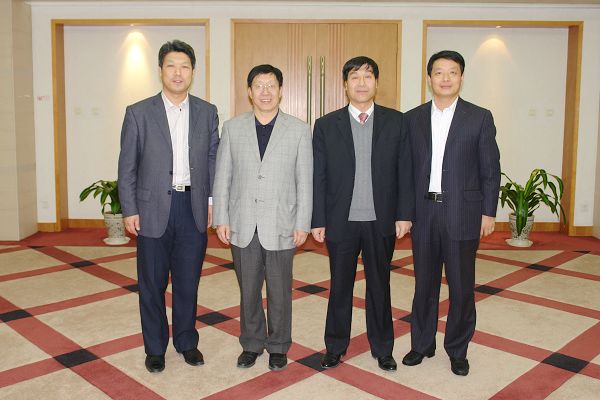 姜茂发副校长(左二)会见李守生副总经理(右二)和姜智慧副书记(右一)