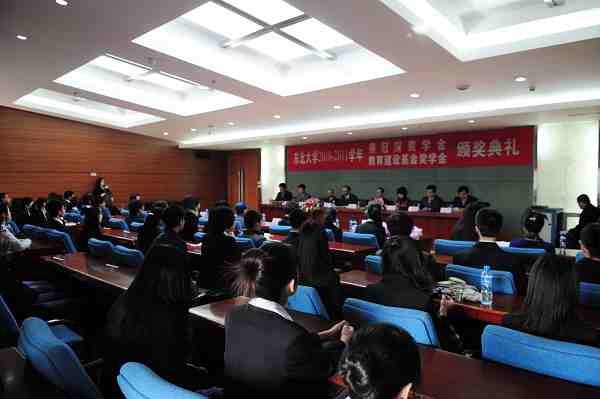 会见结束后,2010-2011学年东北大学蔡冠深奖学金、教育建设基金奖学金颁奖典礼在汉卿会堂402室举行。蔡冠深博士一行,我校党委书记孙家学,校党委副书记、纪委书记杨明等出席颁奖典礼。杨明宣读了2010-2011学年东北大学蔡冠深奖学金、教育建设基金奖学金的表奖决定。与会嘉宾共同为获奖学生颁奖。