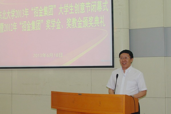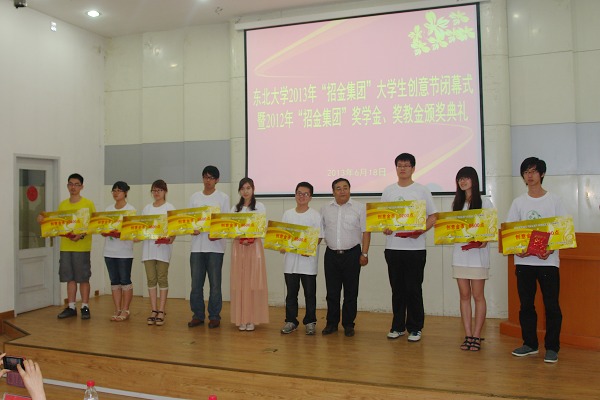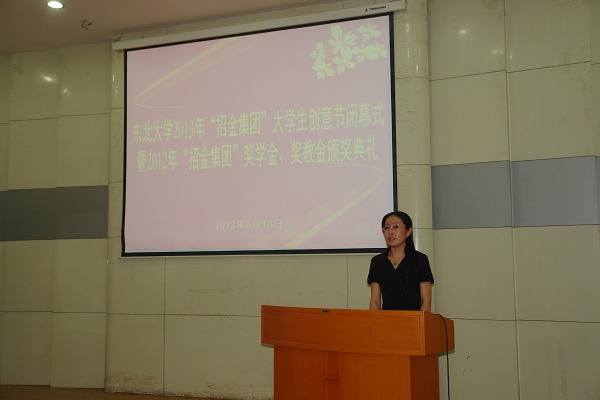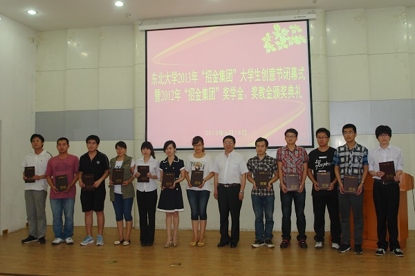 6月18日,东北大学2013年度“招金集团”大学生创意节闭幕式暨2012年“招金集团”奖学金、奖教金颁奖典礼在图书馆报告厅举行。招金集团人力资源总监王万红,招金教育产业发展有限责任公司总经理邵爱东,我校副校长姜茂发出席典礼。东北大学基金管理办公室主任李鹤主持颁奖典礼。